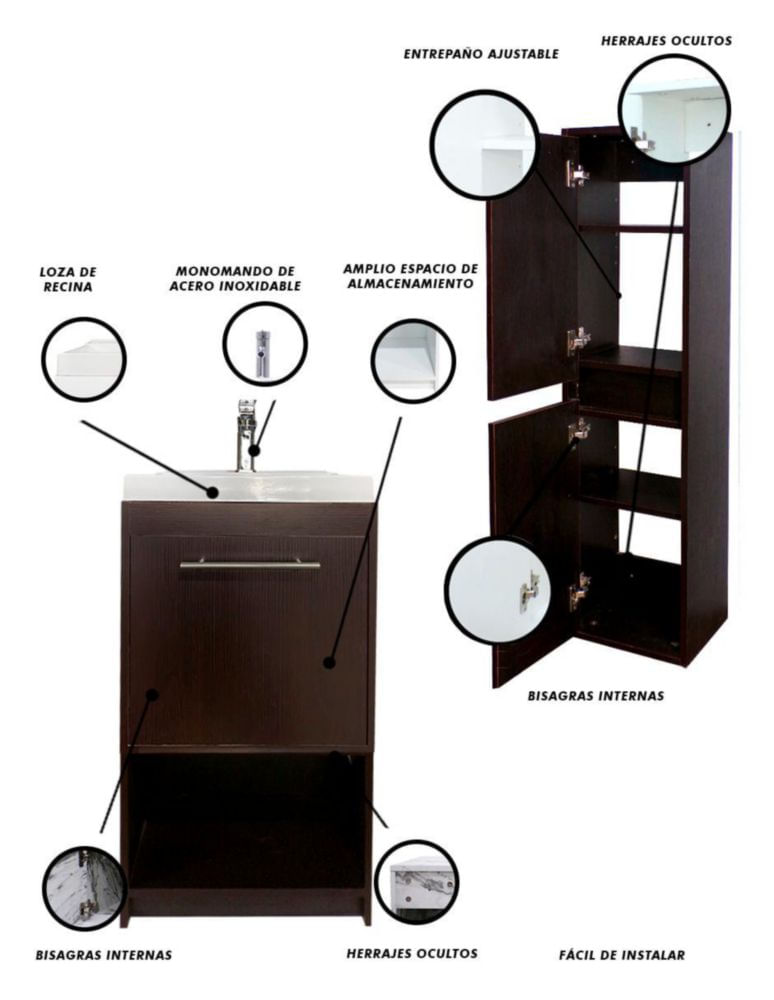 MueblesMuebles de BañoGabinetesGabinete Con Lavamanos y Monomando + Gabinete Organizador Seine