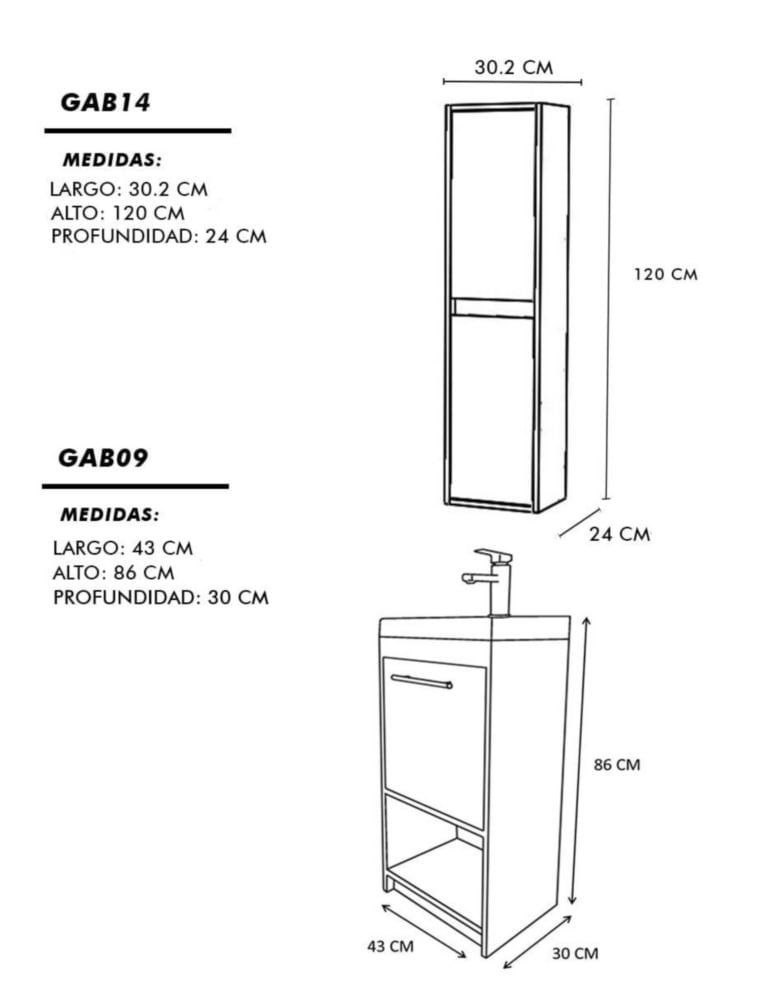 Gabinete Con Lavamanos y Monomando + Gabinete Organizador Seine