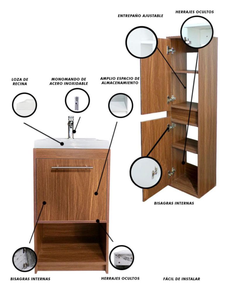 MueblesMuebles de BañoGabinetesGabinete Con Lavamanos y Monomando + Gabinete Organizador Seine