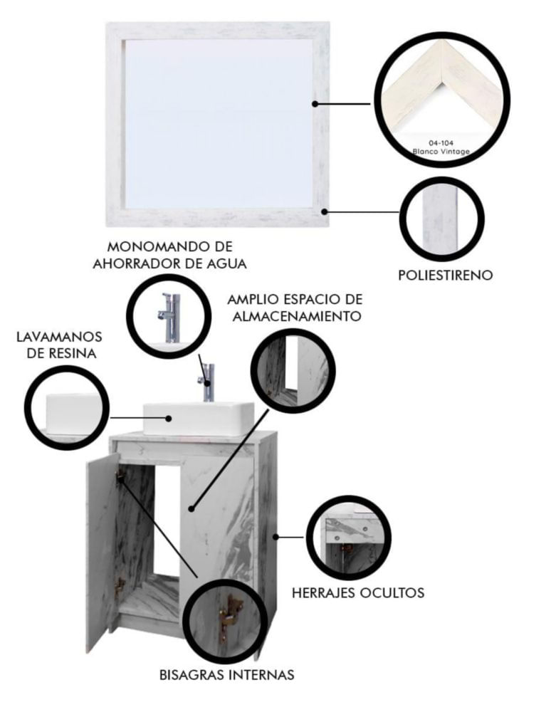 Gabinete De Baño Con Lavabo VARENNA Y Espejo Decorativo