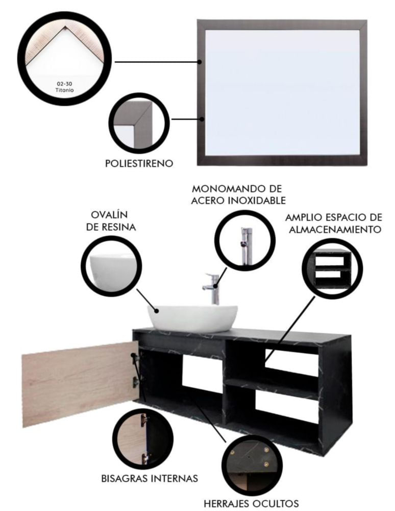 MueblesMuebles de BañoGabinetesGabinete De Baño MARBELLA Con Espejo Decorativo