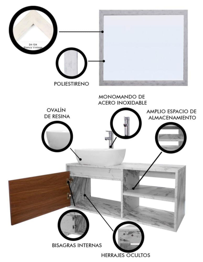 MueblesMuebles de BañoGabinetesGabinete De Baño MARBELLA Con Espejo Decorativo