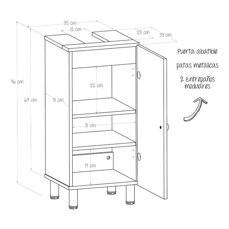 Gabinete de baño para lavabo dena maderkit ceniza c/p