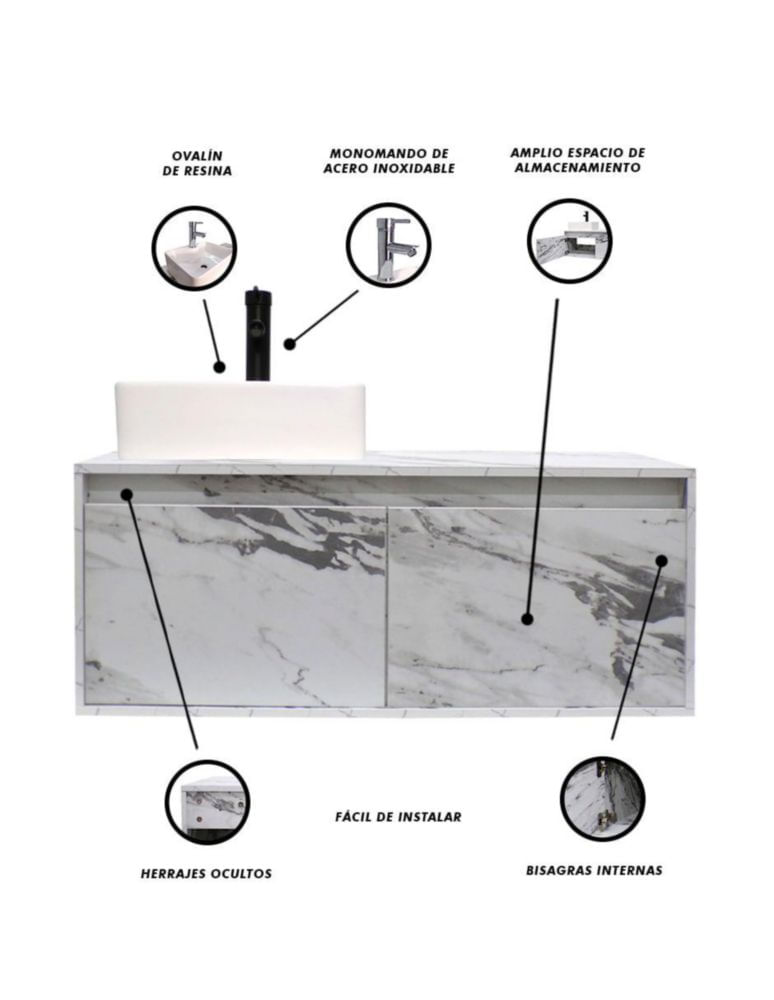 Gabinete Flotante Para Baño Con Lavamanos Y Llave OLIVIA