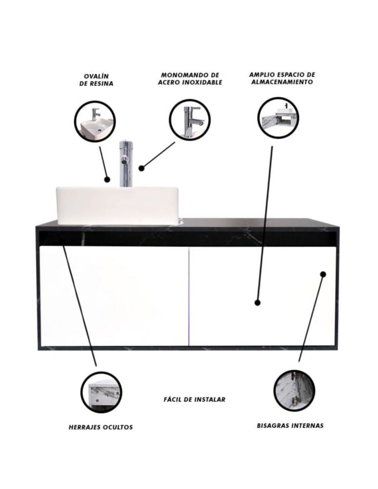 Gabinete Flotante Para Baño Con Lavamanos Y Llave OLIVIA