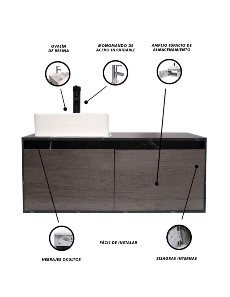 Gabinete Flotante Para Baño Con Lavamanos Y Llave OLIVIA
