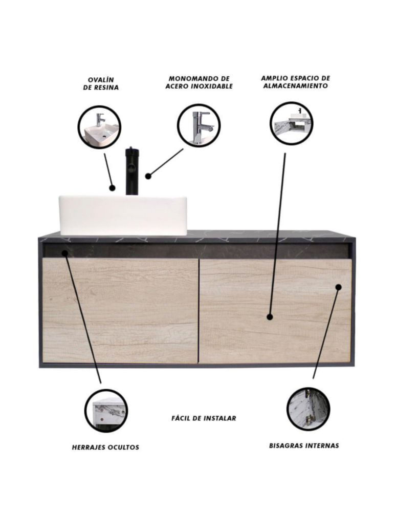 Gabinete Flotante Para Baño Con Lavamanos Y Llave OLIVIA