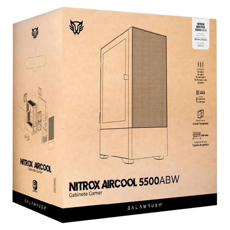 Gabinete gamer balam rush aircool 5500abw atx 3+1 fan malla