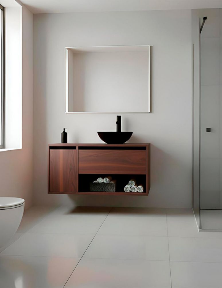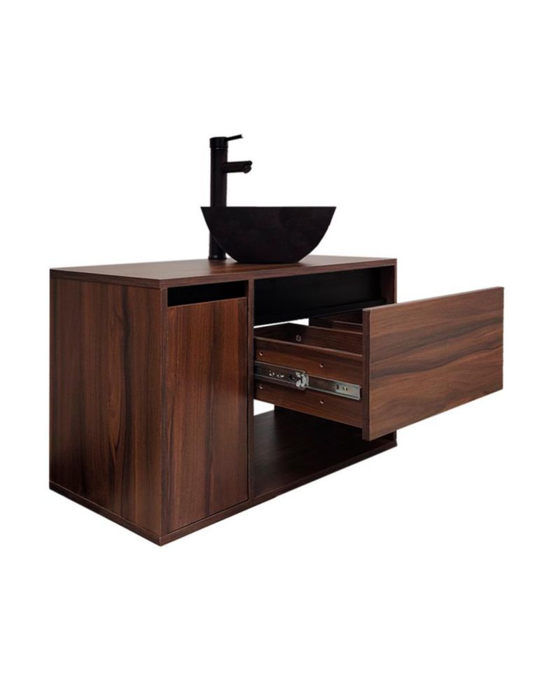 Gabinete HASIN para Baño con Ovalín y Llave Mezcladora, Mueble con Puerta y Cajón, Lavabo Moderno con Almacenamiento, Diseño Minimalista.