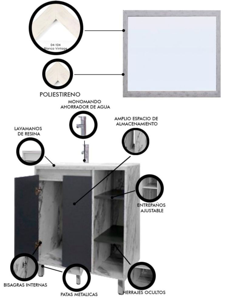 MueblesMuebles de BañoGabinetesGabinete Para Baño Con Lavabo FREYA Y Espejo