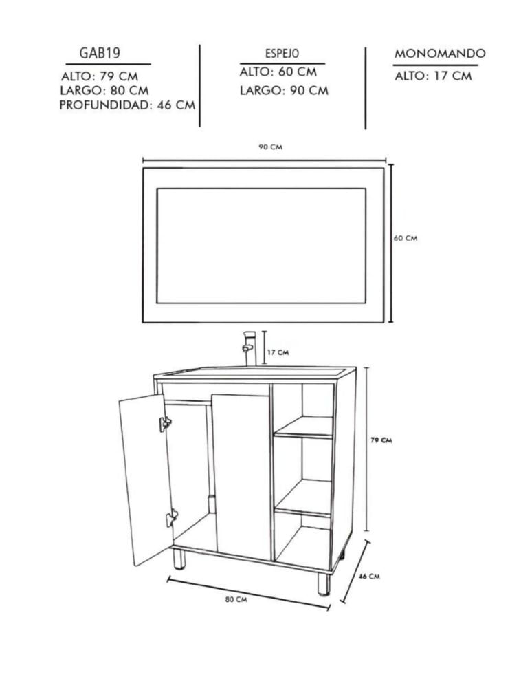 Gabinete Para Baño Con Lavabo FREYA Y Espejo