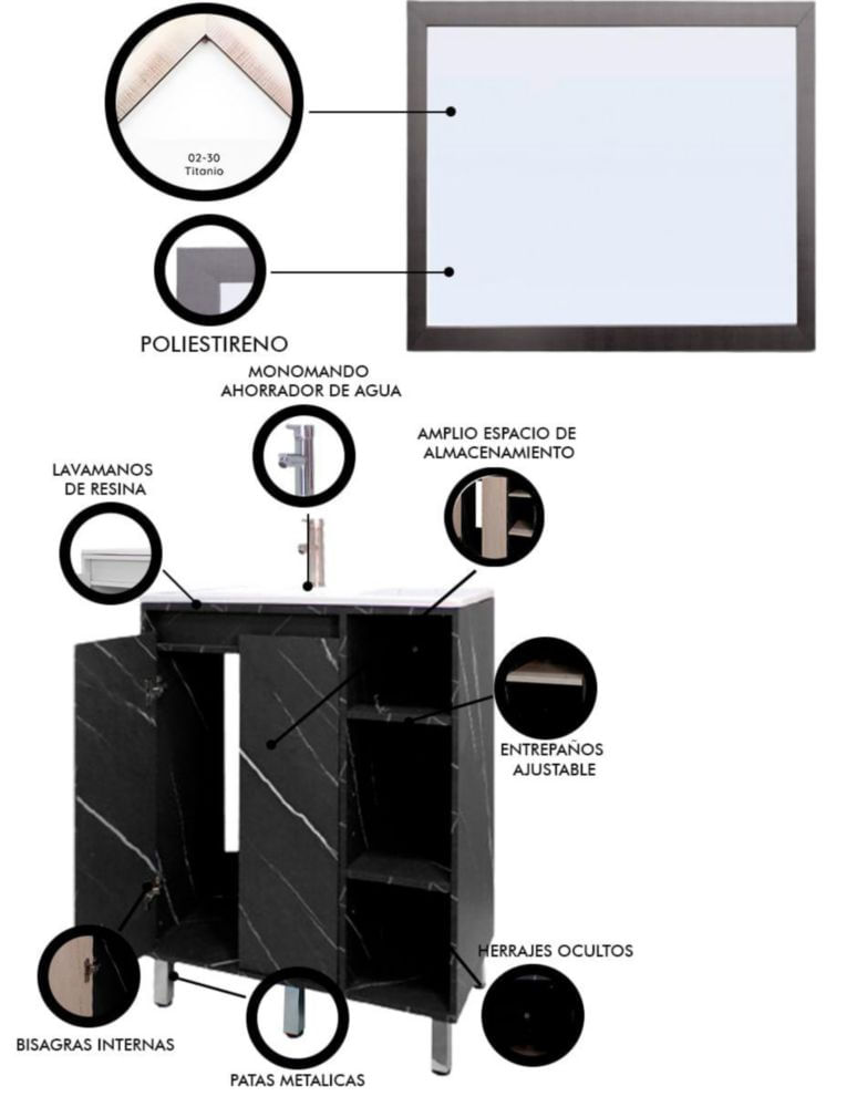 MueblesMuebles de BañoGabinetesGabinete Para Baño Con Lavabo FREYA Y Espejo