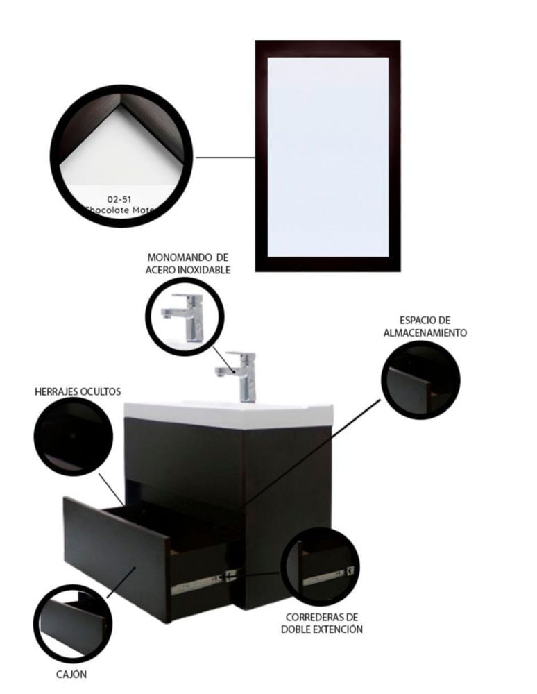Gabinete Para Baño Con Lavamanos Y Espejo Decorativo SION