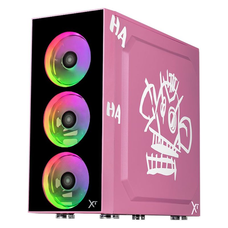Gabinete xtreme pc gaming jinx edition media torre 4 fan rgb rosa