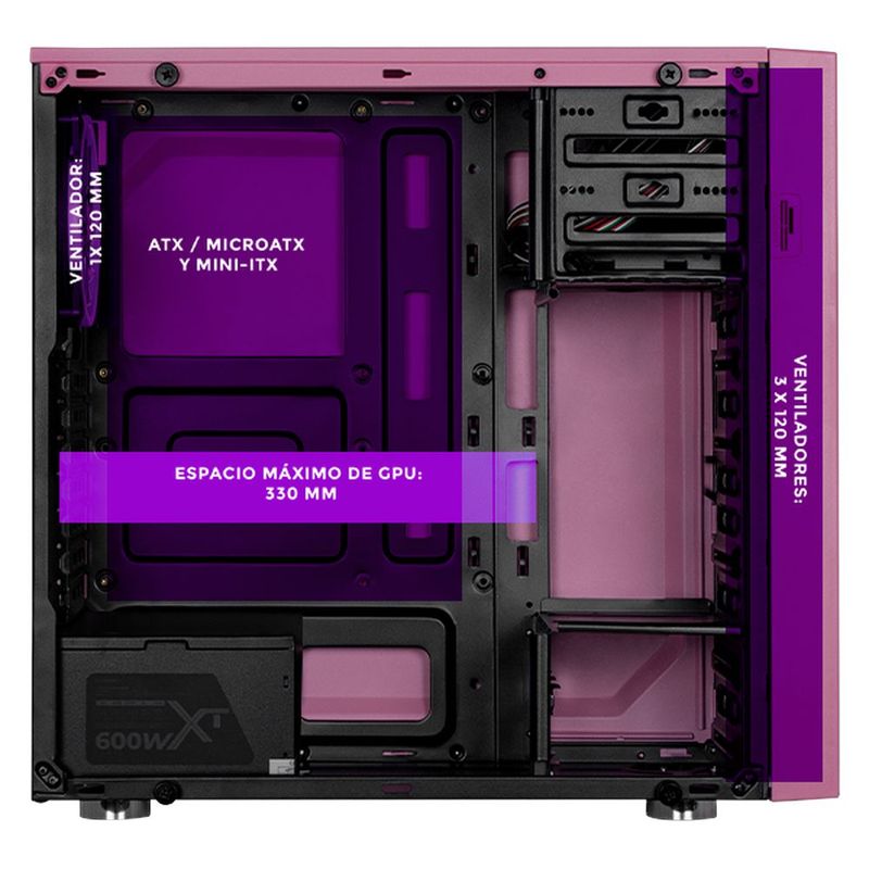 CómputoAccesorios y periféricosComponentesGabinete xtreme pc gaming jinx edition media torre 4 fan rgb rosa