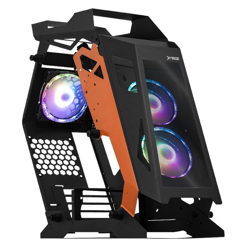 Gabinete xtreme pc gaming mini torre 3 fan argb negro y naranja