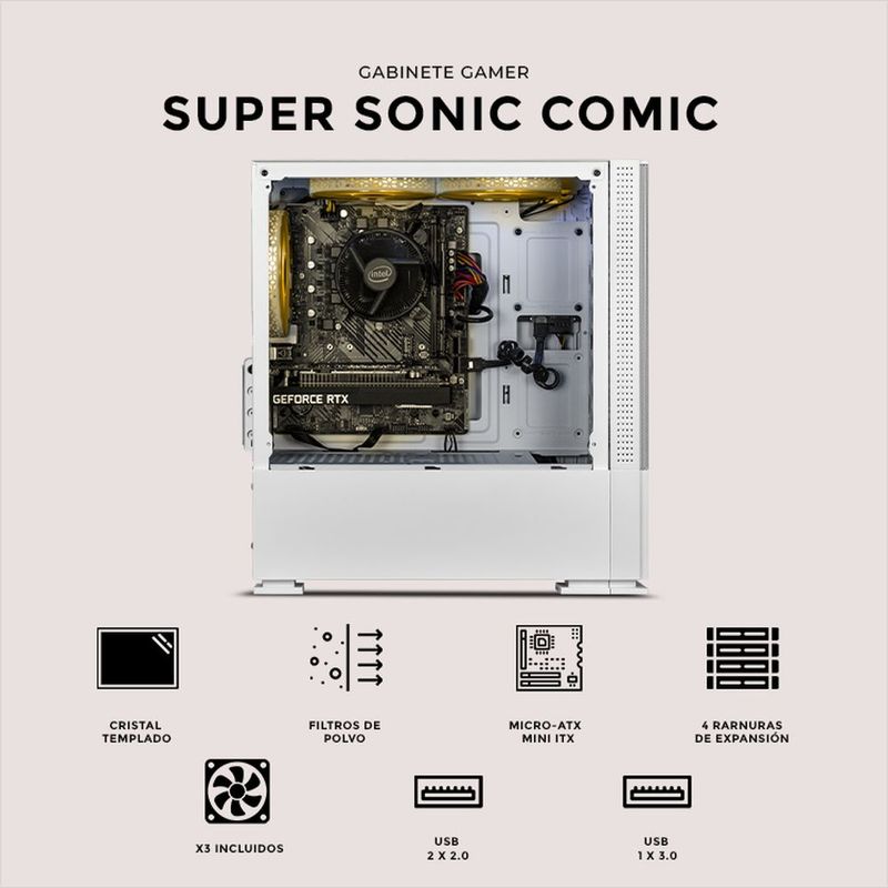 CómputoAccesorios y periféricosComponentesGabinete xtreme pc gaming sonic super sonic comic mini torre 3 fan
