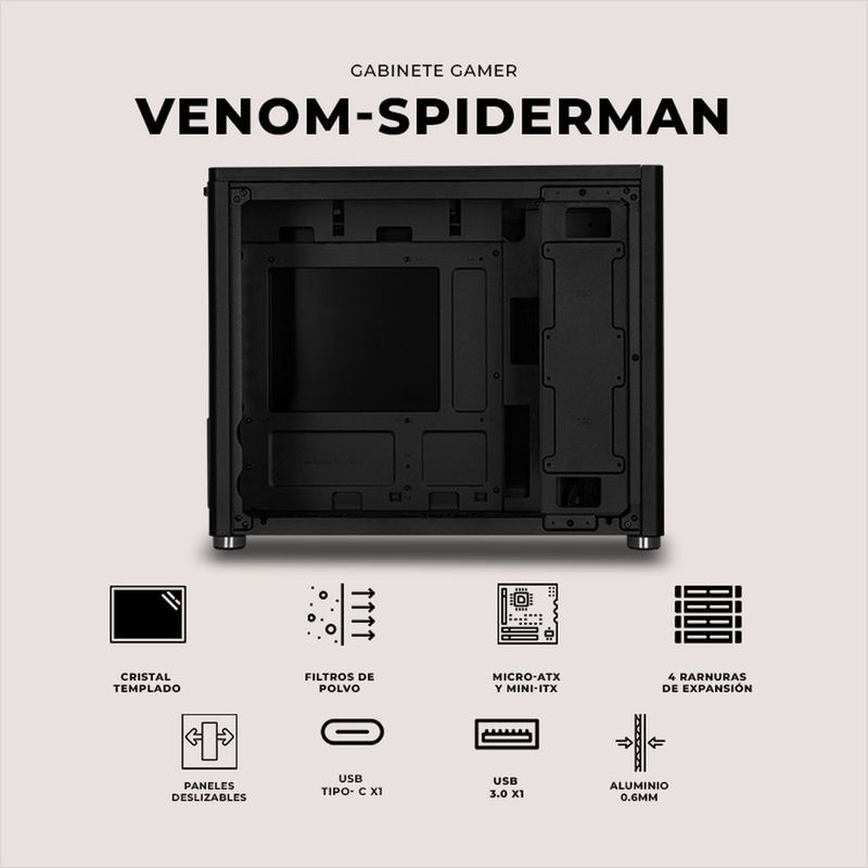 CómputoAccesorios y periféricosComponentesGabinete xtreme pc gaming venom-spider comic edition mini torre usb-c