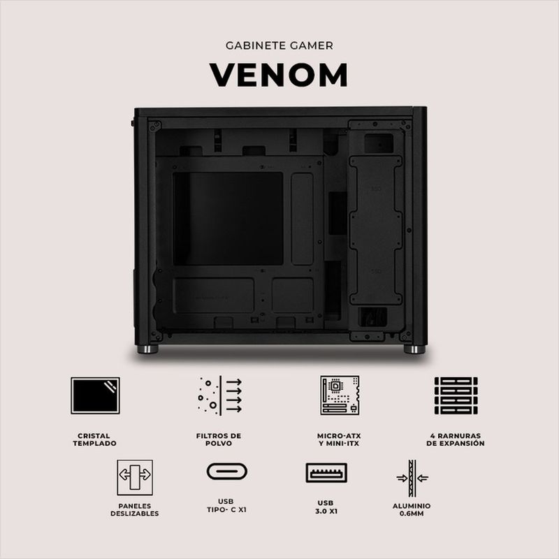 CómputoAccesorios y periféricosComponentesGabinete xtreme pc gaming venom v2 comic edition mini torre usb-c