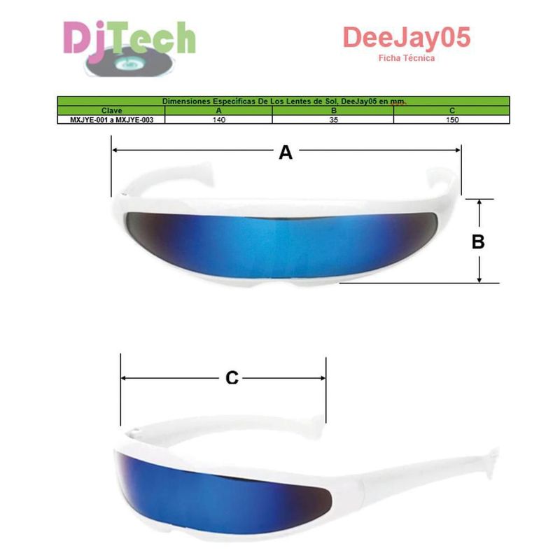 Moda y accesoriosLentesSolaresGafas Sol Futuristas Modernas DeeJay05 MXJYE-002 Lentes de Sol Reflectantes Futurist