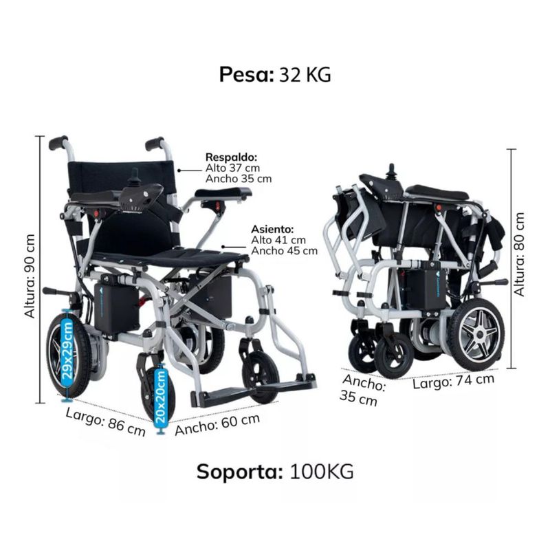 Salud y Equipamiento MédicoEquipo MédicoMovilidadGambimedic Silla De Ruedas Electrica Acero 32kg Mod. Gm6013a Soporta 100kg Todoterreno Permitida En Aviones Portatil Para Viaje Plegable 2 Motores