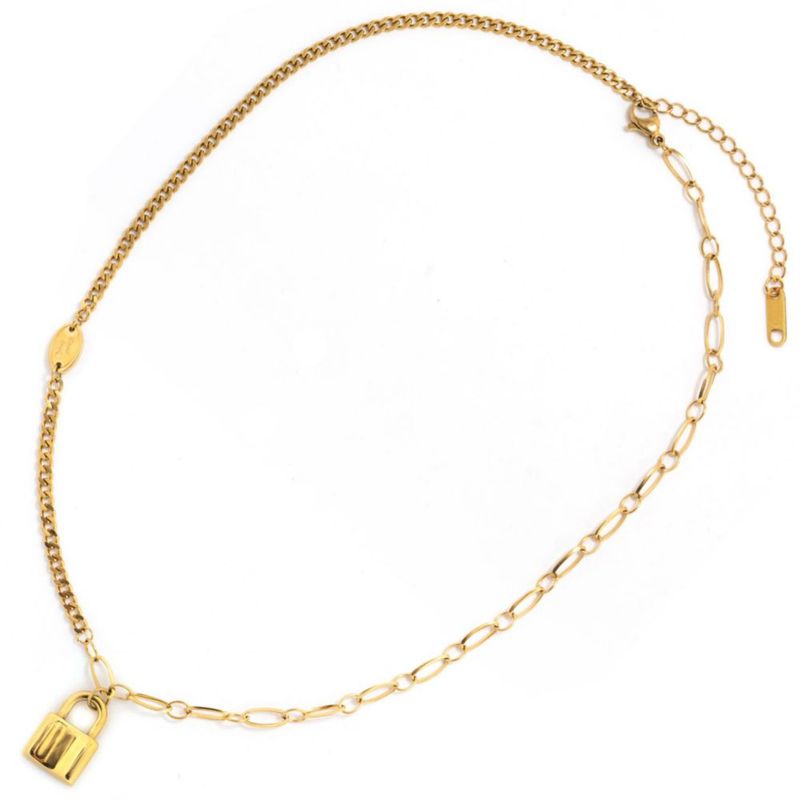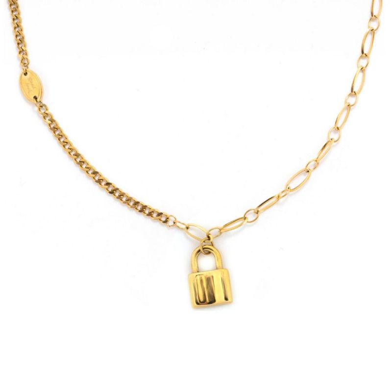 Gargantilla Candado 45cm Acero Inoxidable Tono Dorado EH27