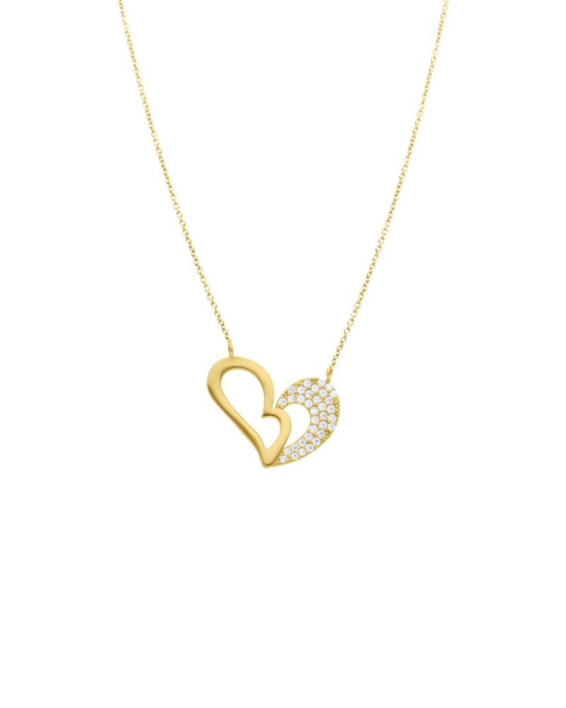 GARGANTILLA CORAZON CON CADENA ORO AMARILLO 14K CON ZIRCONIAS 45CM
