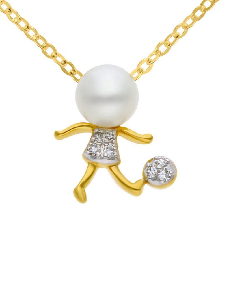 GARGANTILLA DE ORO AMARILLO 14K CON 4PTS DE DIAMANTE Y PERLA (VS1-VS2) (G-H)