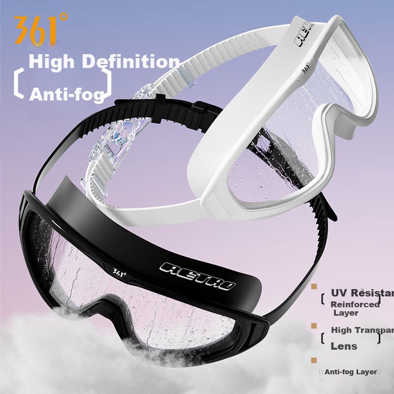 Goggles de natación armazón grande lentes HD antivaho para hombre y mujer