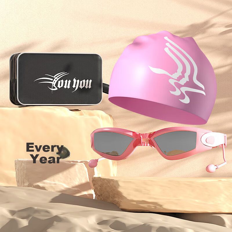 Set de natación Yoyou Goggles antivaho gorro tapones pinza nasal rosa electrochapado Unisex