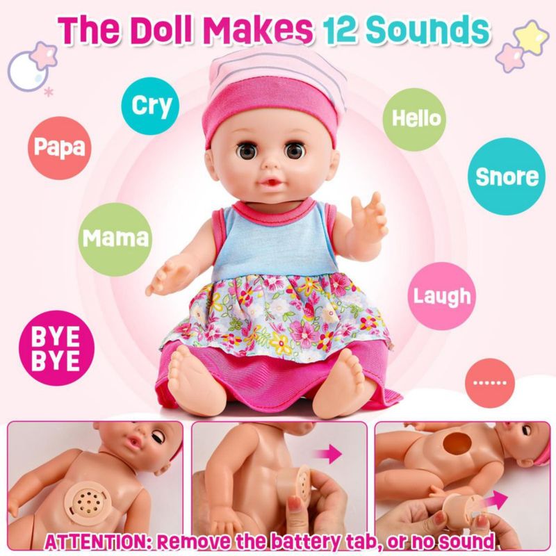 Bebés y juguetesJuguetesFiguras de AcciónGolray - Juego de cuna y trona para muñeca de 30 cm - Muñeca interactiva con sonido y orina, con 20 accesorios, bolsa de pañales