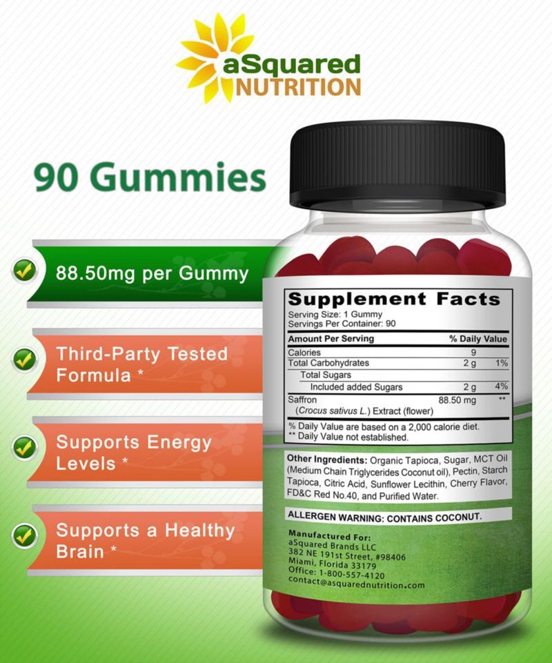 Gomitas de azafrán Supplement Squared Nutrition 850 mg x 90