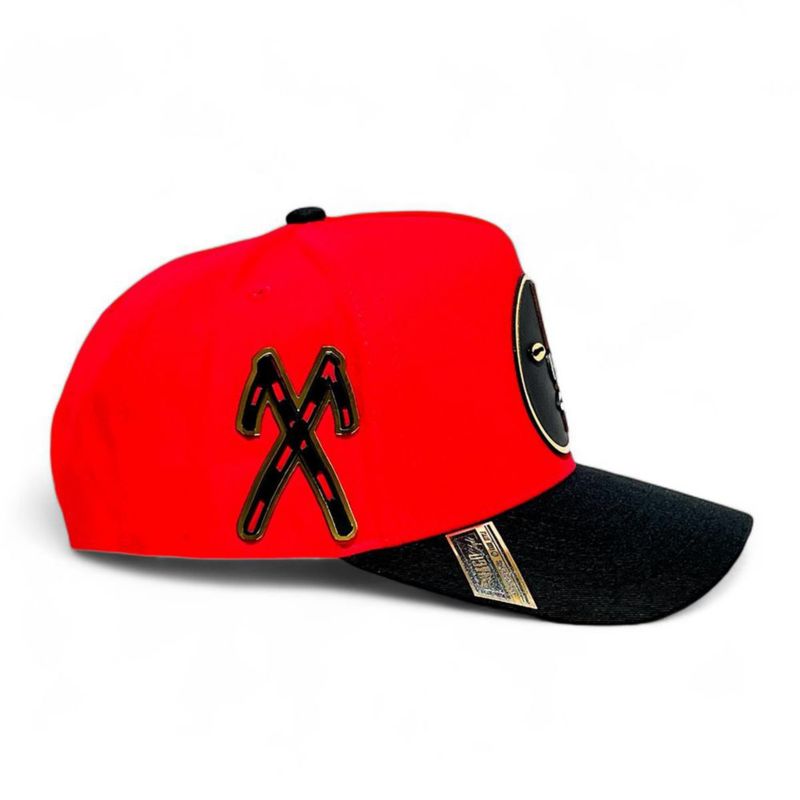 Gorra Vago Style Eleggua snapback piel roja y negra dorada