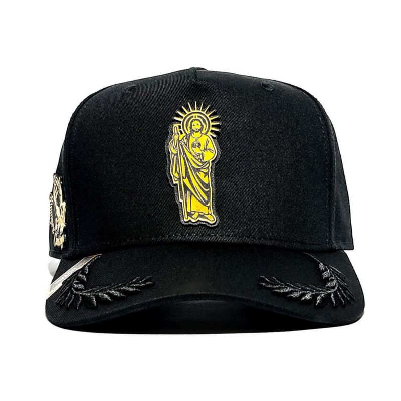 Gorra Vago Style San Judas negra snapback de lujo dorada