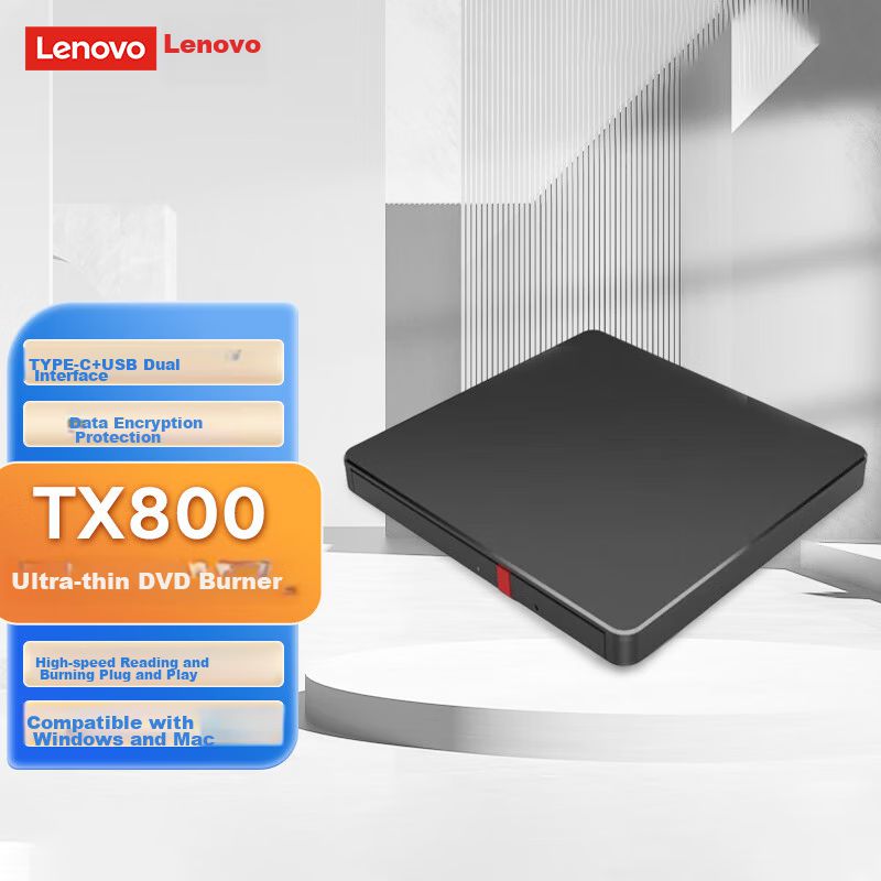 CómputoTablets y AccesoriosAccesoriosGrabadora De Dvd Portátil Lenovo Thinkplus Tx800 Dual Usb-C Negro