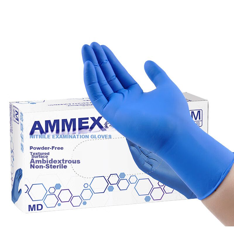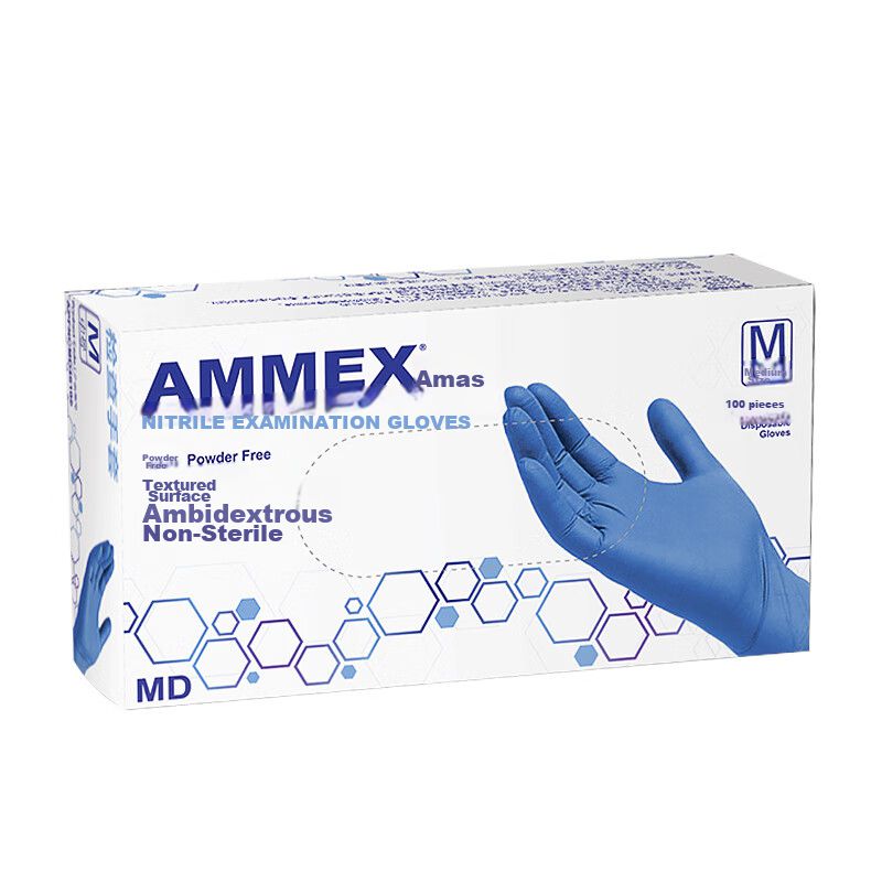 Guantes AMMEX nitrilo azul texturizados talla mediana unisex