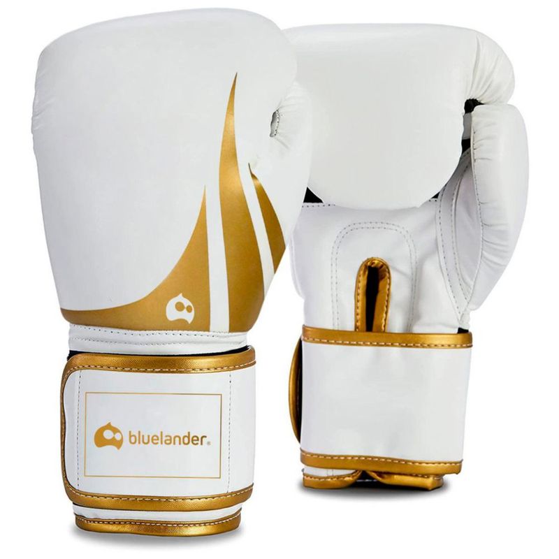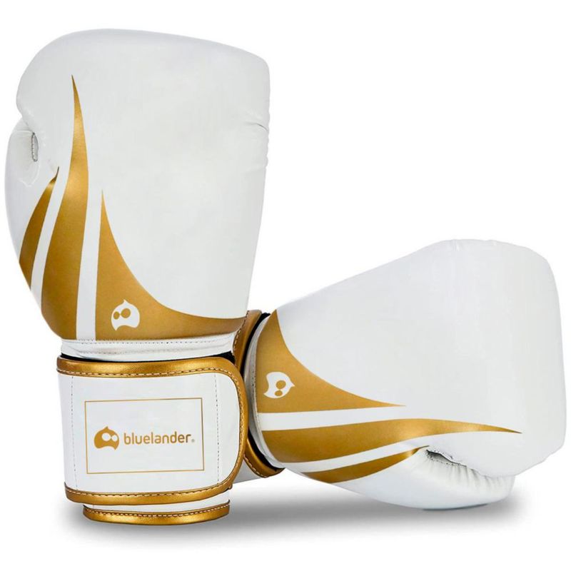 Guantes de Box Bluelander 12 Oz Blanco y Dorado Protector Bucal Incluido