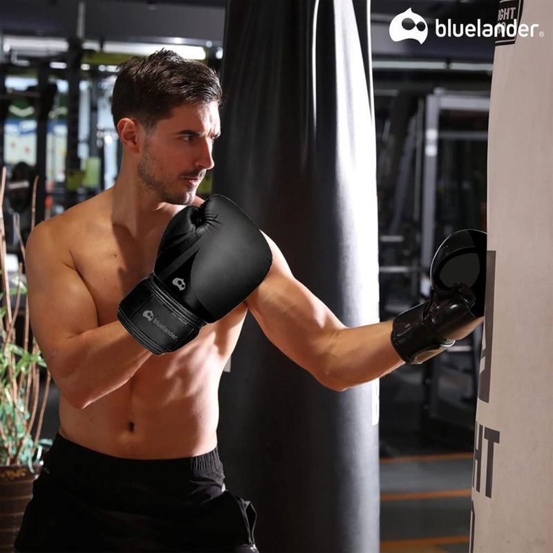 DeportesBox y Artes MarcialesGuantes y GuanteletasGuantes de Box Bluelander 14 Oz Negro Mate Protector Bucal Incluido