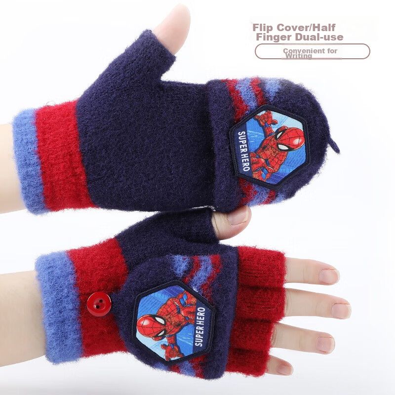 Guantes Disney Spider-Man para niños forrados vellón táctiles cubierta medio dedo