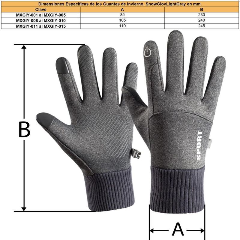 Moda y accesoriosAccesorios de ModaGuantesGuantes Térmicos de Vellón Antifrío MXGIY-011 SnowGlovLightGray Guantes de Invierno de Vellón