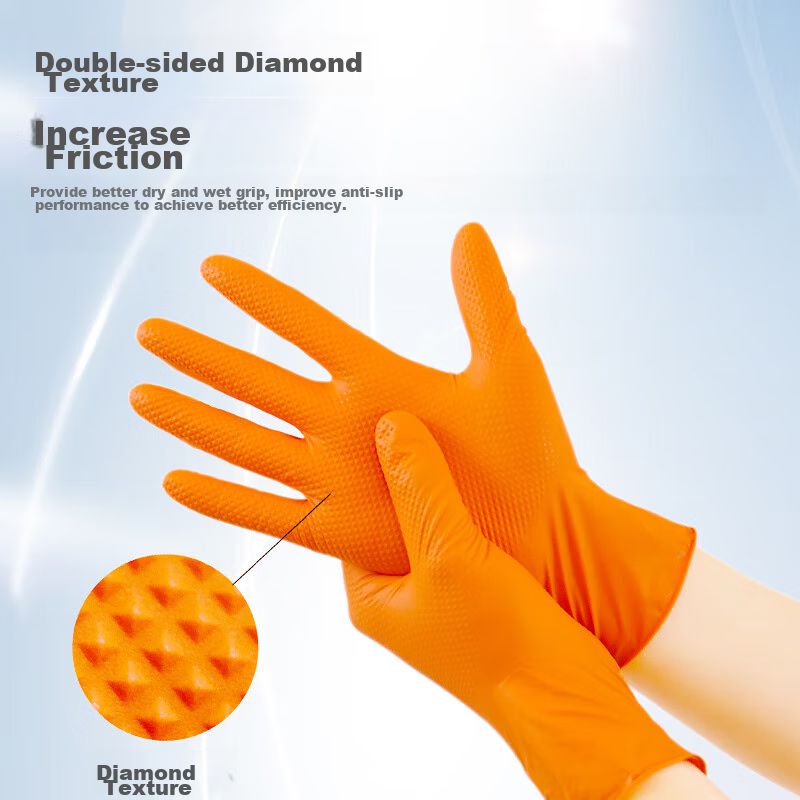 HogarCocinaUtensiliosGuantes WOLSGIN nitrilo extra gruesos naranja talla L para uso industrial unisex