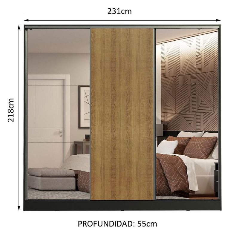 Guarda Ropa 3 Puertas 2 Espejo Negro y Marrón Madesa