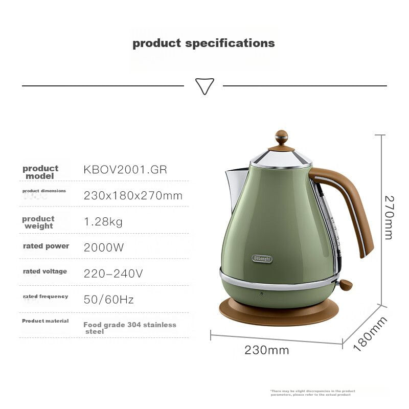Hervidor Eléctrico Delonghi Kbo2001.Vgr 1.7 Litros Verde Oliva