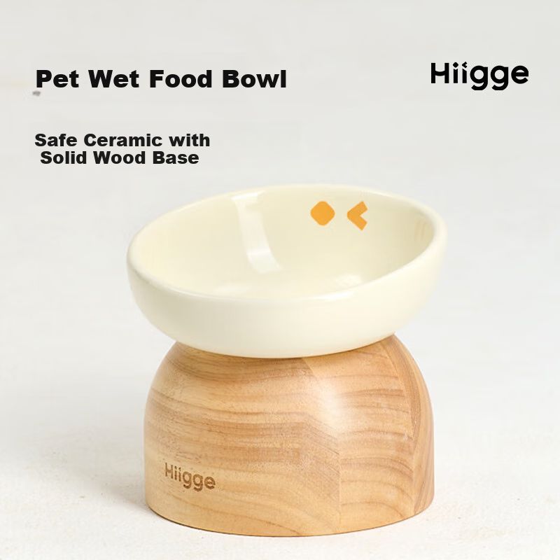 MascotasGatosComederos y BebederosHiigge Plato para Comida Húmeda con Base de Madera Antivuelco 180 ml