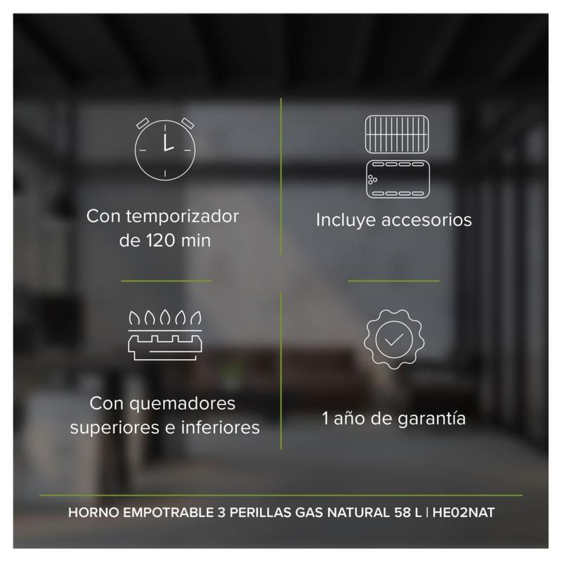 Horno de Gas Natural 58 L Empotrable Acero Inoxidable AVERA HE02NAT