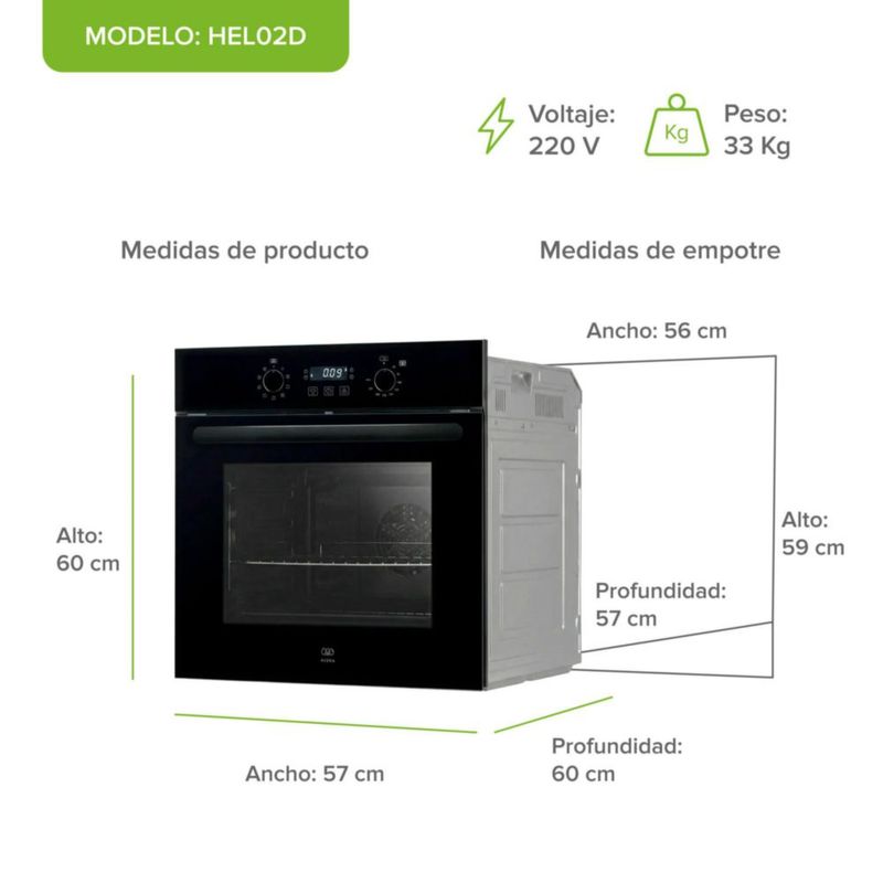 Horno Eléctrico Empotrable 67 L, 9 funciones Avera HEL02D