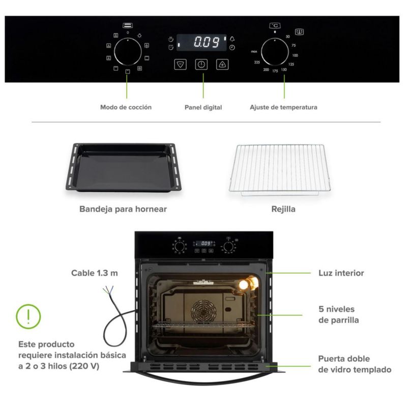 Línea blancaCocinaHornosHorno Eléctrico Empotrable 67 L, 9 funciones Avera HEL02D