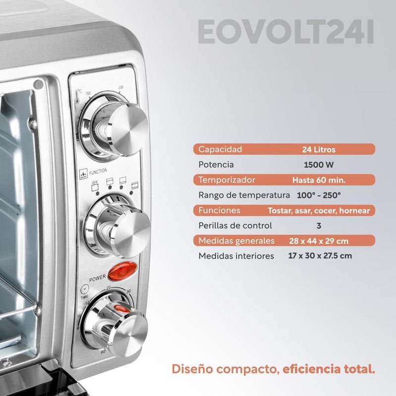 Horno eléctrico tostador 24 lt de mesa 1500 w acero inox