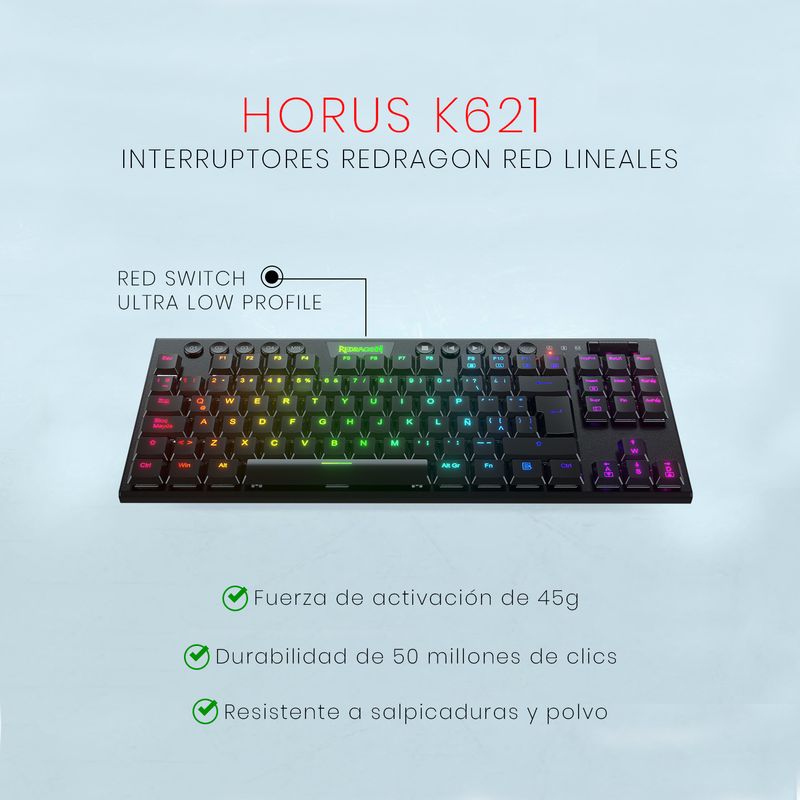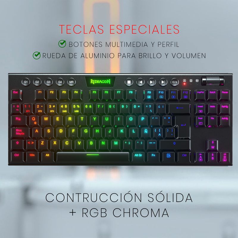 CómputoAccesorios y periféricosTeclados y MouseTeclado Gamer Redragon Horus Negro Tkl Wireless Red Switch