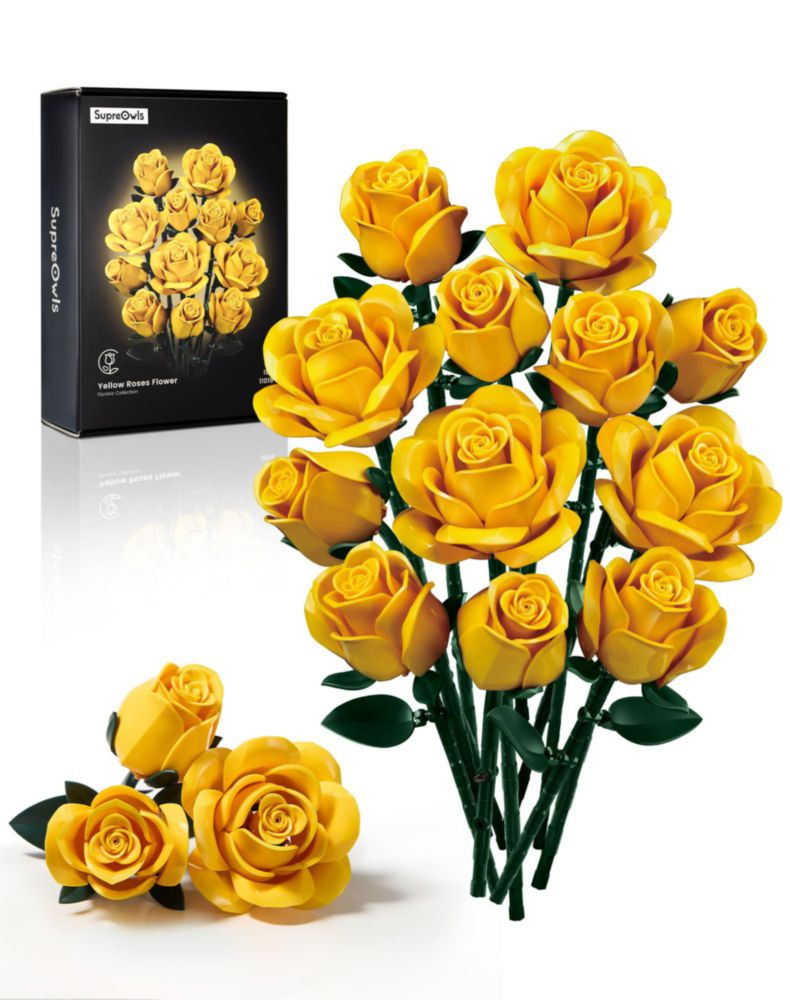 Bebés y juguetesJuguetesFiguras de AccióniATOM - Ramo de rosas amarillas, kit de colección botánica de flores artificiales para adultos, decoración cálida para el hogar